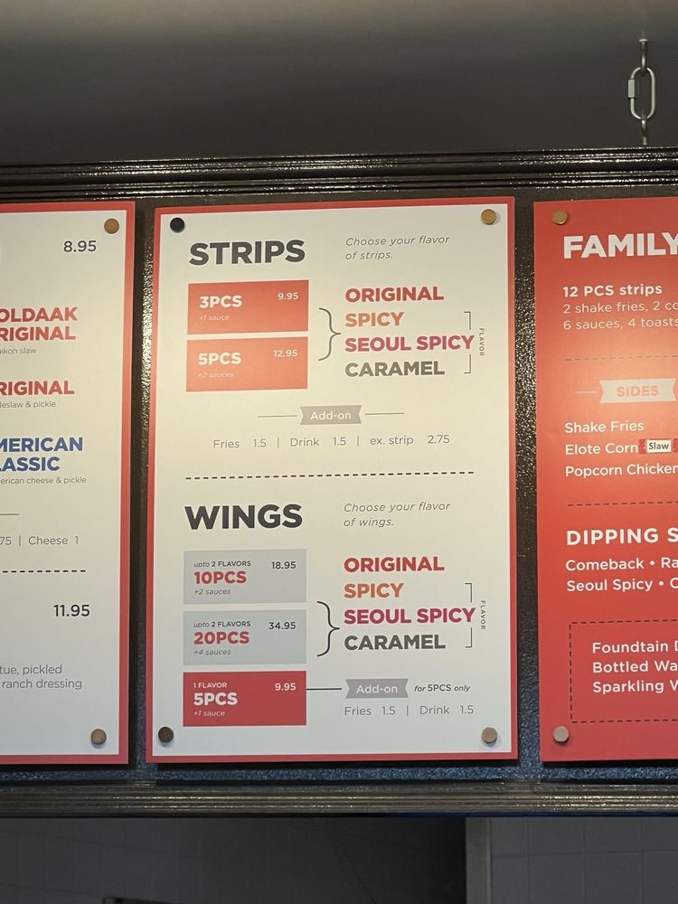 20 Pieces of our delicious, double fried crispy chicken wings. Try our signature SPICY flavor, sweet and spicy Seoul Spicy, our sweet and succulent CARAMEL SOY flavor, or the crispy and juicy ORIGINAL flavor. You can choose up to 4 flavors for your wings. Comes with 4 complimentary dipping sauces on the side.